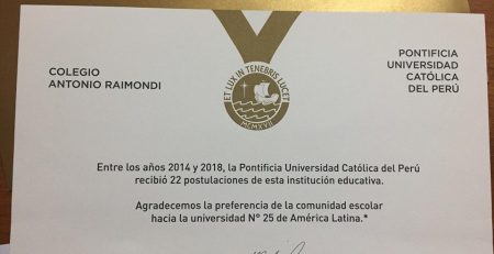 Diploma de reconocimiento entregado hoy por la Pontificia Universidad Católica del Peru debido al excelente rendimiento de nuestros alumnos... read more